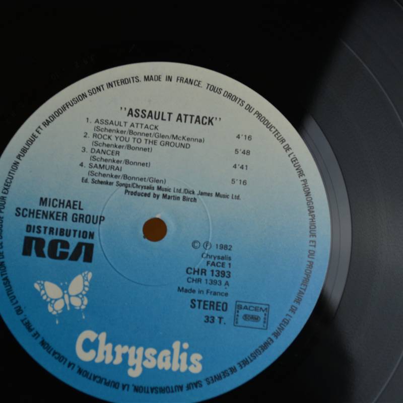 Disque vinyl 33T de Michael Schenker « Assault attack » , sorti en 1982.